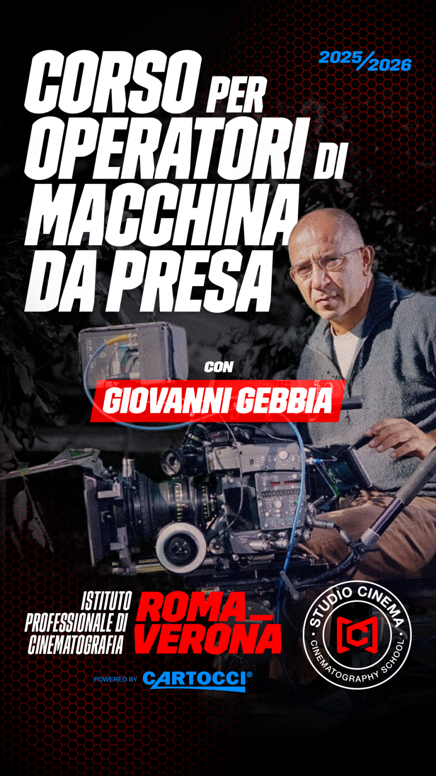 A guidarti sarà Giovanni Gebbia, operatore di macchina da presa con una lunga esperienza nel settore cinematografico. Ha lavorato come operatore steadycam alla realizzazione di oltre trenta lungometraggi, tra cui Io sono qui di Liliana Cavani (1993), Con gli occhi chiusi di Francesca Archibugi (1994), Io ballo da sola di Bernardo Bertolucci (1995), Vesna va veloce di Carlo Mazzacurati (1995), Nirvana di Gabriele Salvatores (1996), Ovosodo di Paolo Virzì (1997), Fino alla Fine di Gabriele Muccino (2024). Come regista ha inoltre realizzato tre cortometraggi e uno spot pubblicitario.